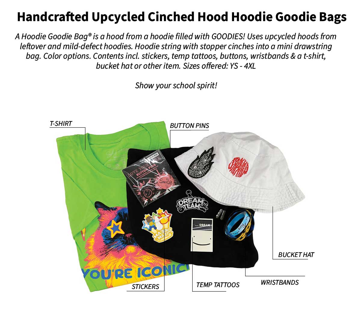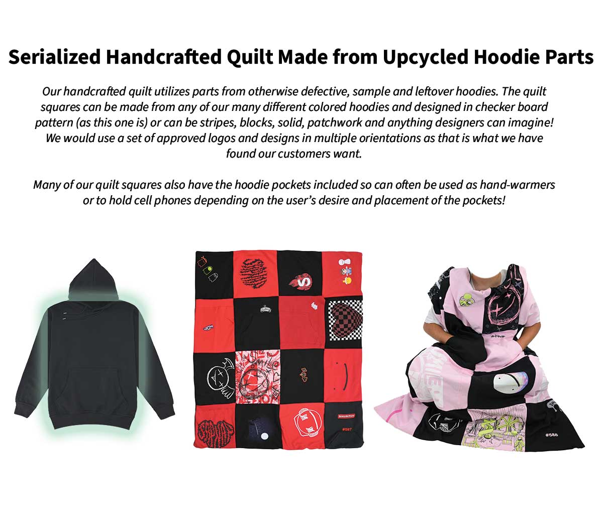 Using parts of defect hoodies, we upcycle and reuse the good pieces to create a large variety of customized upcycled products.